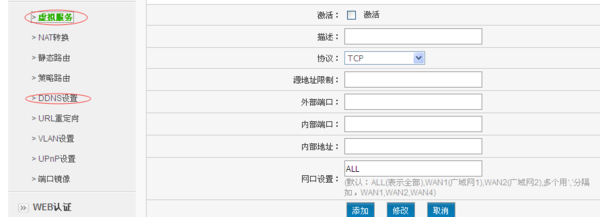4.如果還要在外網看監控,則要在路由器上配置虛擬服務器;如果沒有固定IP地址,還要在路由器上設置DDNS。